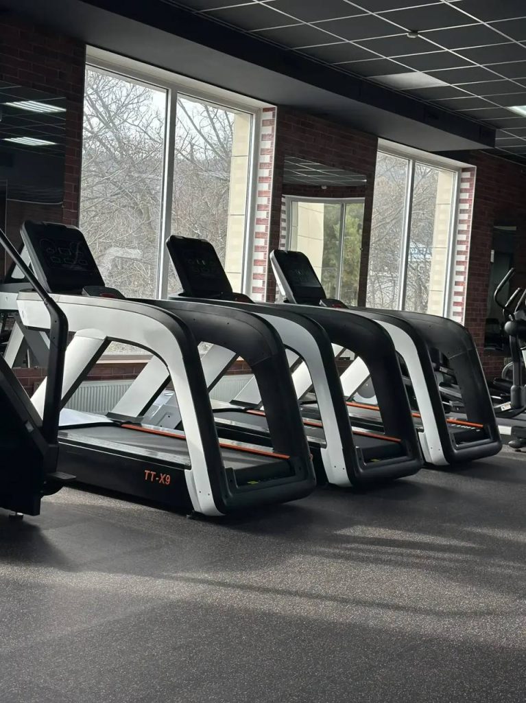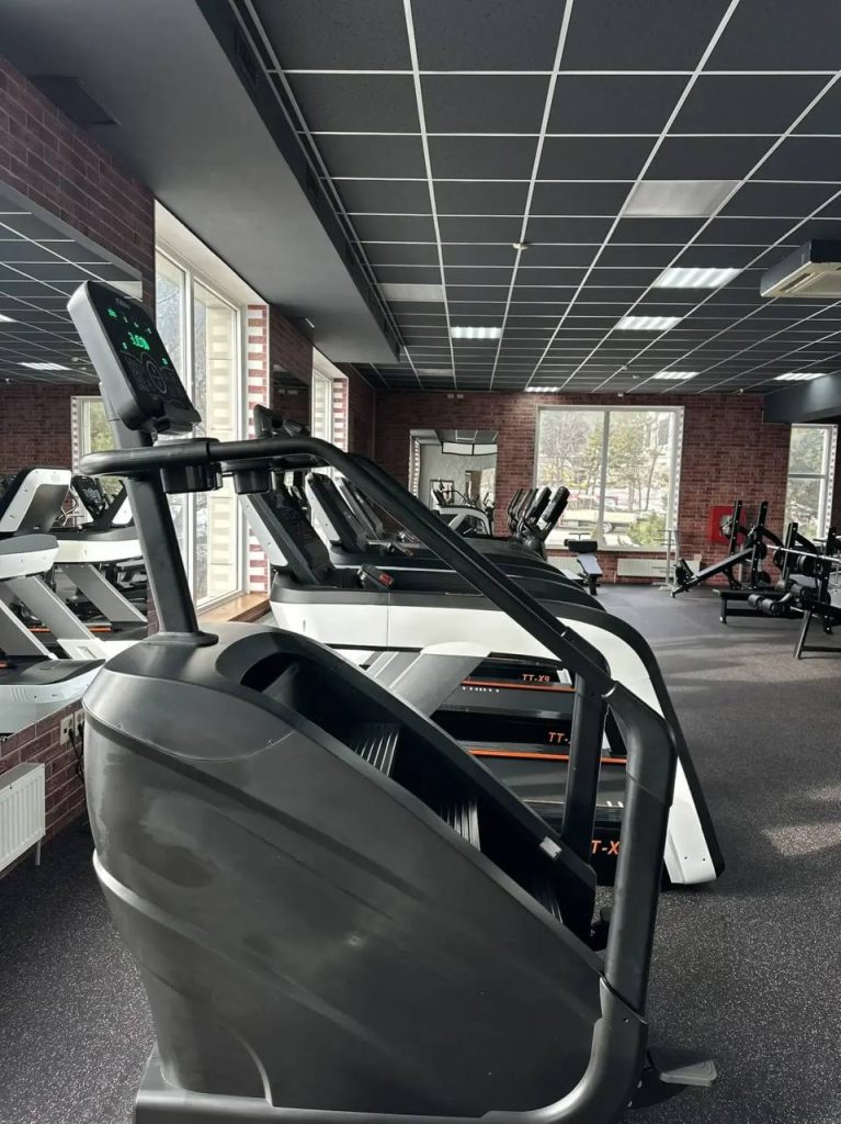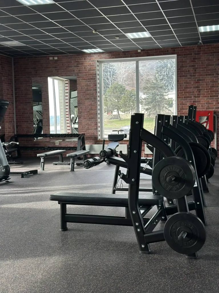 - Просторный тренажерный зал с зонами для разных видов тренировок